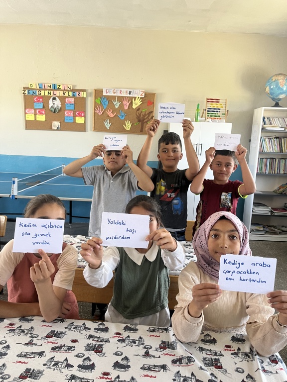 "İyiliği Paylaş " etkinliğimizde ,her öğrencimiz yaptıkları iyilikleri kartlarına yazarak arkadaşları ve öğretmenleri ile paylaştılar .